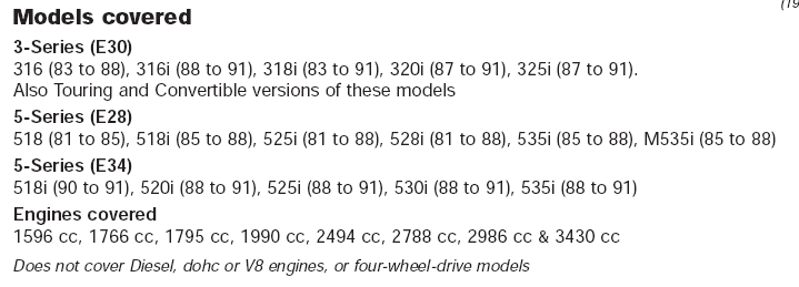 Coś dla posiadaczy modeli E-30, E-28, E-34. Haynes Bmw 3 & 5 Series Service And Repair Manual