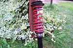 Amortyzator i rure oddalem do tokarza, stoczyl postawke, nagwintowal rure i dorobil pierscien (nakretke). Rura jest grubsza od amora wiec zostaly dorobione dwa pierscienie (gorny z zatoczeniem), spasowane "na wcisk". Za to tokarz wziol 150 zl. Dorobilem tez tuleje, ktora zostala przyspawana do podstawki i nastepnie obrobiona na tokarce.Wiadac to na tym zdjeciu.